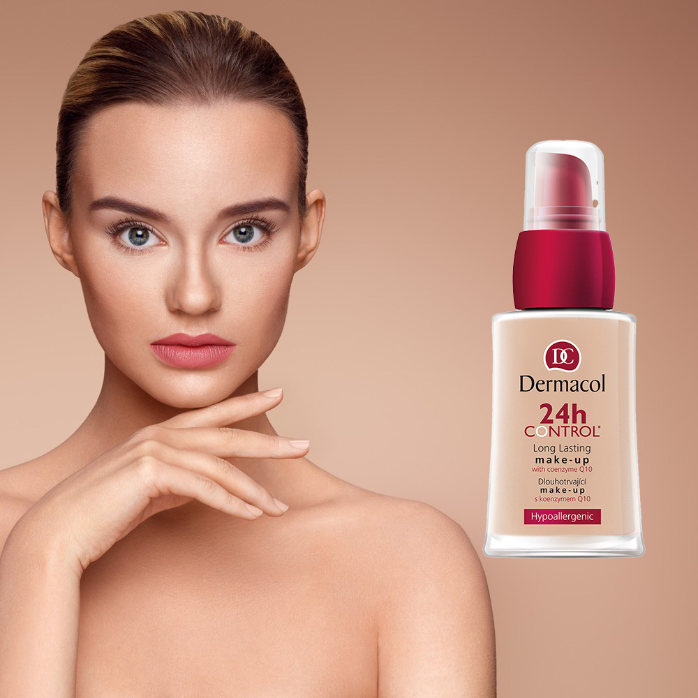 A Dermacol 24h Control Long Lasting Make-Up é uma base líquida com acabamento natural que protege, corrige, melhora a elasticidade e devolve a firmeza à pele madura. Ela também hidrata e evita sinais de fadiga. Sua fórmula exclusiva e inovadora com coenzima Q10 garante uma pele perfeitamente protegida, suavizada e uniforme por até 24 horas.