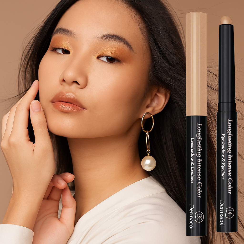 A sombra cremosa em bastão Dermacol Longlasting Intense Colour Eyeshadow & Eyeliner oferece uma cor intensa e pode ser aplicada não só como sombra, mas também como um delineador.